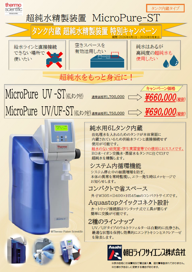 超純水装置 MicroPure-ST(タンク内蔵)特別キャンペーン