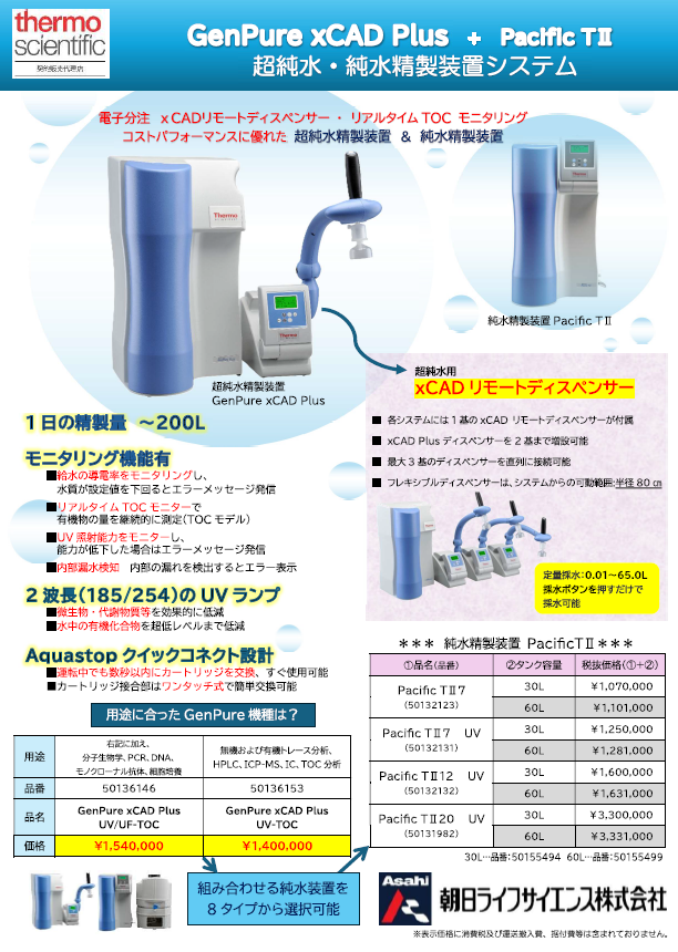 超純水・純水精製装置システム GenPure xCAD + PacificTⅡ